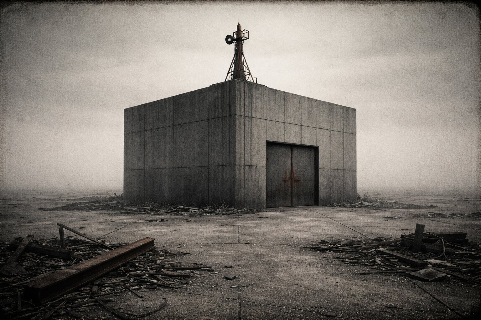 Впервые обнаружили что-то необычное. Бетонная коробка, метра 3 в высоту и примерно по 5 в длину и ширину. Наверху торчит небольшой шпиль, что-ли. К нему прибиты громофон и лампа. Вход в коробку один - гермодверь, ржавая и заклинившая, но, похоже, герметичная. Невольно в голове рождается вопрос - а есть ли в этом месте самосбор, и если да, то сколько таких коробок окажется поблизости, когда придёт время?